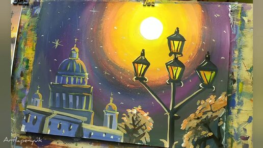 Вечерний Петербург\ рисуем гуашью