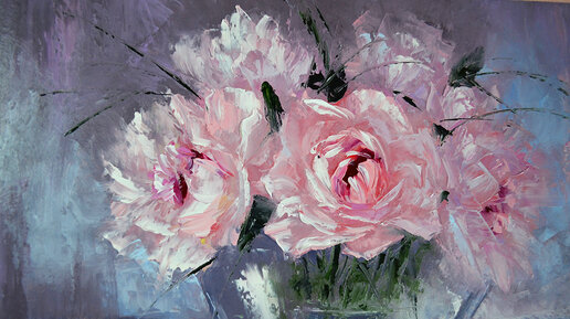 Как мазюкая краской нарисовать картину с цветами.