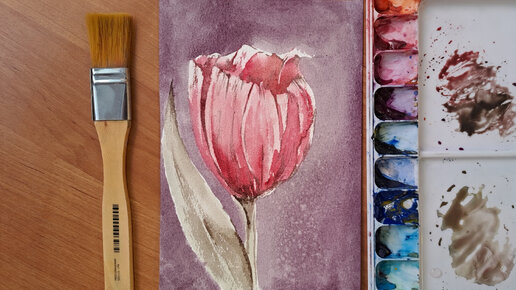 Рисую цветок тюльпан акварелью. Акварель для начинающих.