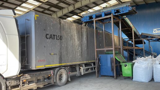 Полуприцеп -мусоровоз с подвижным полом в работе