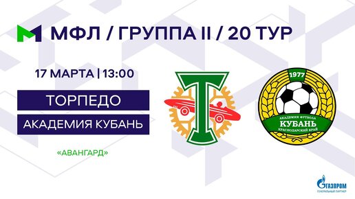 МФЛ. Торпедо - Академия Кубань. Группа II. 20-й тур.