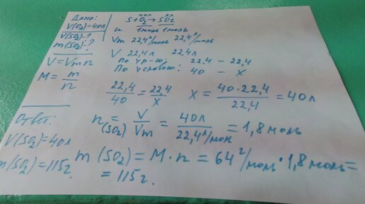 решение задачи на нахождение объема и массы вещества
