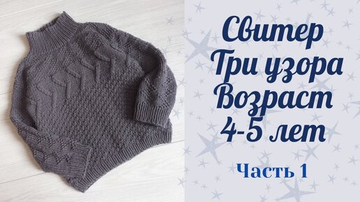 Свитер "Три Узора" для мальчика спицами с воротником стойкой/возраст 4-5 лет/рост 104-110 см/Часть 1