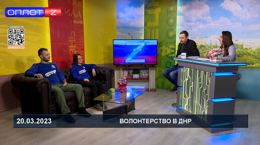 Руководитель «Молодой Республики» и МГЕР ДНР Сергей Добровольский и волонтёр Елизавета Новикова в программе «Утро» на Оплот ТВ
