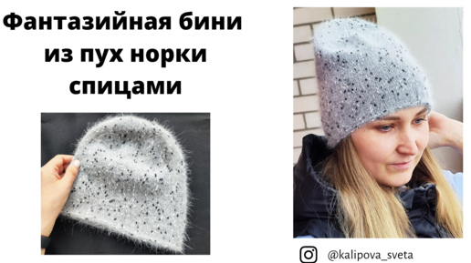 Фантазийная шапочка бини из пух норки, спицами