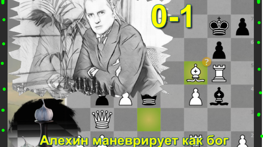 Александр Алехин черными потратил всего 22 драгоценных хода, играя в "центре" против Жака Мизеса в Гааге, 1921: покажу мат в доигрывании 0-1