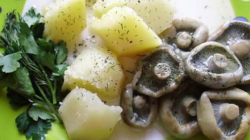 Грузди . Салат из солёных груздей с картофелем.