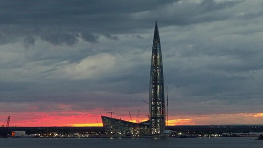 Газпром башни и стадион вечером. 2018.
