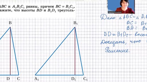 Задача на признаки равенства прямоугольных треугольников. Геометрия 7 класс.