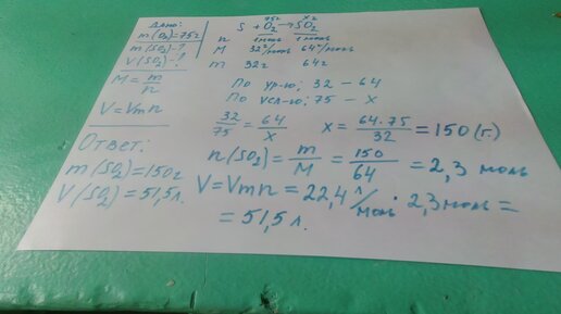 Задача на нахождение массы и объема вещества по известной массе другого вещества
