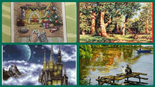 Ангел весны на пластиковой канве. Маруська и Котовский. Дубовая роща. У камина. Лунный замок.