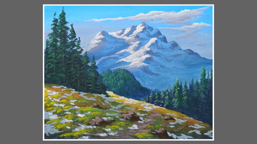 Как нарисовать весенний пейзаж с помощью 5 цветов🌿🌲⛰️🎨 Пошаговое видео🎥