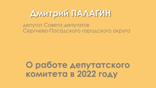 Дмитрий Палагин – о работе депутатского комитета в 2022 году