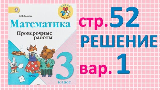 Страница 52 вариант 1 решение | Математика 3 класс | Проверочные работы Волкова С. И. | Школа России