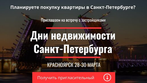 Дни недвижимости Санкт-Петербурга в Красноярске. Планируете покупку квартиры в Питере? Получите пригласительный
