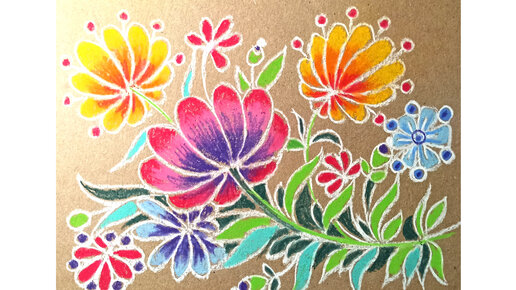 🍀🌺🌞🍀Цветочная композиция, нарисованная пастельными карандашами на крафтовой бумаге. 🍀🌞🌺🍀