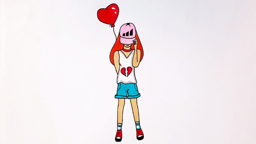 Как нарисовать ДЕВУШКУ В БЕЙСБОЛКЕ С ВОЗДУШНЫМ ШАРИКОМ