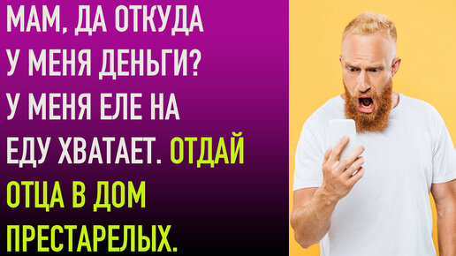 Мам, да откуда у меня деньги? У меня еле на еду хватает. Отдай отца в дом престарелых.