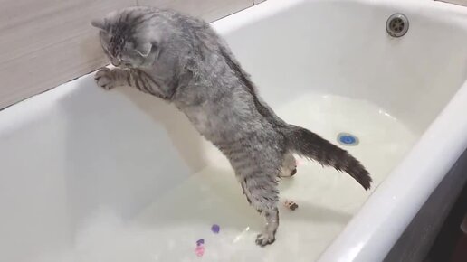 Купаем котенка и папу кота первый раз в ванной / Любят ли милые котики купаться