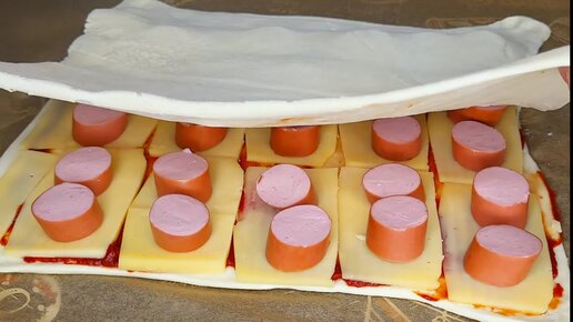 Готовлю по 100 штук в минуту, закрытая пицца-закуска из слоеного теста и сосисок,вкусно и просто