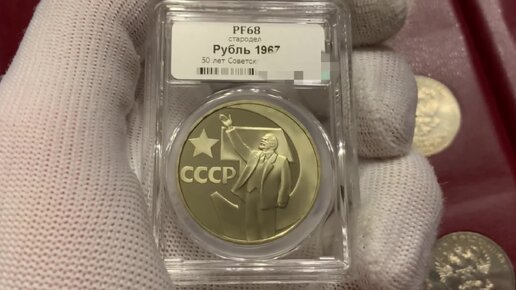 1 рубль 1967 года «50 лет Советской власти» (качество выпуска Proof) в слабе ННР PF68