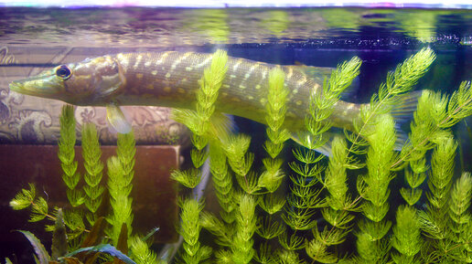 Щука в аквариуме! Кормление щуки живой рыбой!