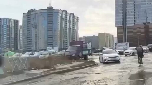 Где-то в Петербурге лужа оказалась сильнее курьера...