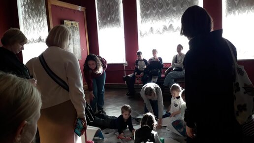 Дети рисуют на паркетном полу Михайловского Замка. Творческие мастерские в Русском Музее.