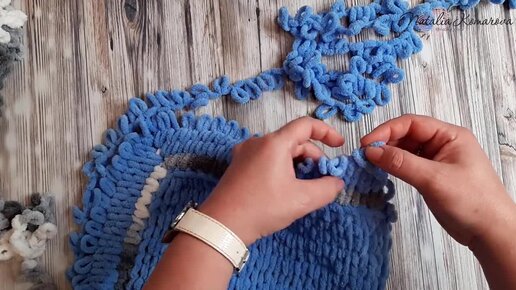 Обвязка пледов из Ализе Пуффи. Вязание без спиц и крючка.
