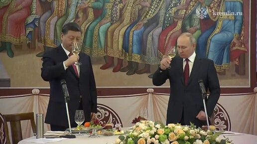 Путин на приёме поднял тост за здоровье Си Цзиньпина и членов китайской делегации