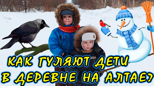 Как дети гуляют в деревне (на Алтае). Пошли размяться по деревенской улице, посмотреть на мартовский снег и первых весенних птиц 🐦