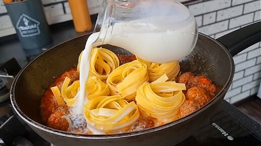 Одна Сковородка! Никаких нарезок! Быстрые Макароны с фрикадельками Очень Вкусно и Просто