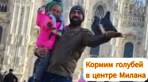 Кормим голубей в центре Милана