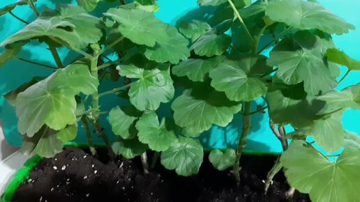 Из вытянутого черенка целый ящик пеларгоний.