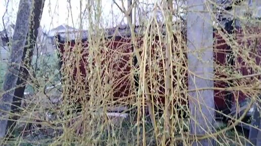 На улице цветет ива,форзиция,барвинок,алыча.
