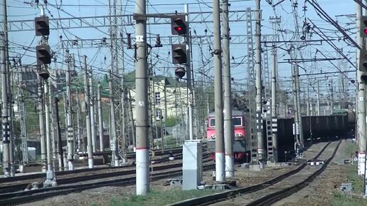 Отправление электровоза ВЛ10У 874 с небольшим грузовым поездом, ст. Домодедово. апрель 2019 г.