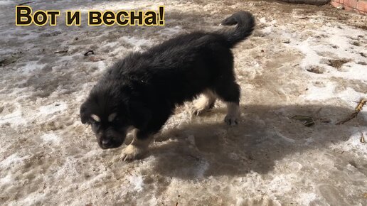 Вот и ВЕСНА! Малыши тибетского мастифа с удовольствием шлёпают по лужам!