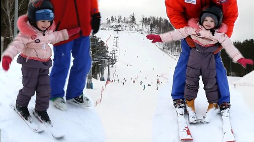 VLOG: Дети учатся кататься на горных лыжах. Зимние Забавы и Развлечения Для Детей