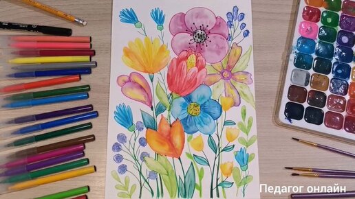 Весенние цветочки. Как нарисовать цветы. Акварельный рисунок поэтапно