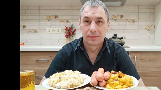 МУКБАНГ/ СОСИСКИ/ КАРТОФЕЛЬ / Салат Оливье