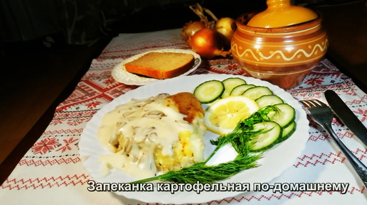 Картофельная запеканка с мясом и грибной подливой по-домашнему. Ум отъешь.