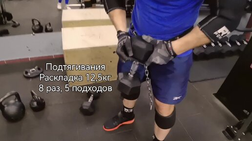 Подтягивания с весом 12,5кг 8 раз, 5 подходов