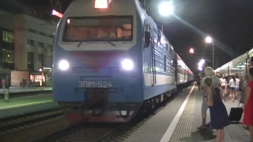 Прибытие электровоза ЭП1М-524 с пассажирским поездом, июнь 2019 г.