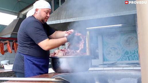 Шурпа "Жареная" на баранине. Ковурма шурва (Qora Sho'rva). Узбекская кухня. Ташкент. Узбекистан.