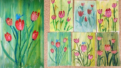 Как нарисовать тюльпаны гуашью. Урок рисования в школе.