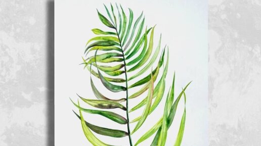 Акварельный этюд ветки пальмы. Материалы: бумага акварельная, карандаш, краски акварельные.