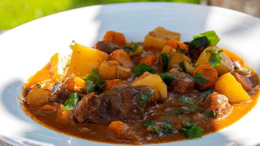 Говядина тушеная с овощами в соусе
