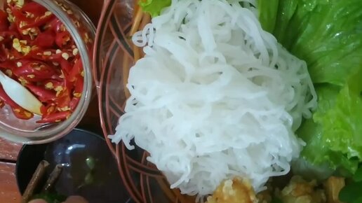 Различные блюдо из рисовой вермишели. Вьетнамская кухня