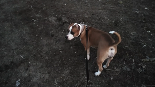 Гуляем вечером с амстаффом в разных местах и встречаем собак