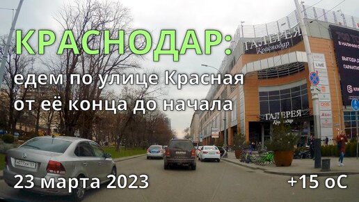 Краснодар: едем от кинотеатра Аврора по улице Красная от её конца до начала 23 марта 2023 года